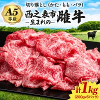 自慢 の逸品! 西之表市生まれの黒毛和牛 雌牛 切り落とし 肉 (200g×5パック)