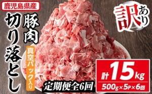 <定期便・全6回>【訳あり】鹿児島県産 豚肉切り落とし(計15kg・500g×5P×6回)