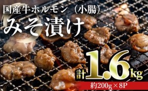 国産牛ホルモン(小腸)みそ漬け(計1.6kg・約200g×8パック)