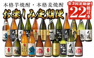 <定期便・全3回(連続)>【芋・麦焼酎セット】曽於市の焼酎満足6本セット(6種各1800ml×3回)