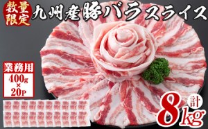 【工場直送 業務用】九州産豚バラスライス<計8kg(400g×20P)>
