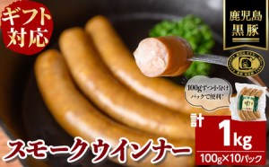 【無添加】【ギフト対応】「福別府農場」鹿児島黒豚無添加スモークウインナー 計1kg 100g×10P