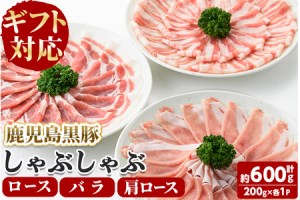 【ギフト対応】「福別府農場」鹿児島黒豚しゃぶしゃぶ(ロース・肩ロース・バラ 各200g)