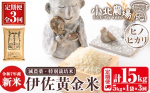 《令和7年産 小北農場の新米 伊佐黄金米〈ヒノヒカリ〉(計15kg・5kg×1袋×3回)