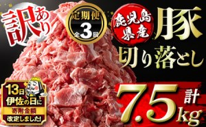 【伊佐の日・寄附額改定】【定期便3回】<訳あり>鹿児島県産豚切り落とし (計7.5kg)