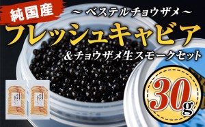 純国産フレッシュキャビア(30g・ベステル)&チョウザメ生スモーク(200g)セット