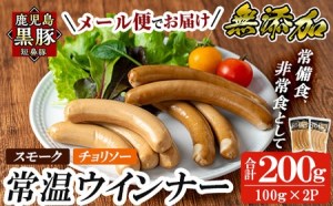 《スモーク・チョリソー各1袋》鹿児島黒豚「短鼻豚」無添加常温ウィンナー200g(100g×2袋)