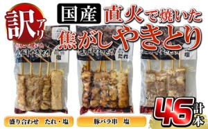 《訳あり》国産!直火で焼いた焦がしやきとり【計46本】