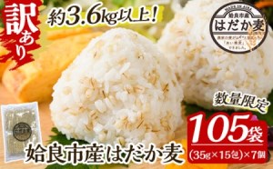 《訳あり・数量限定》姶良市産はだか麦35g×105袋(合計約3.6kg超え)