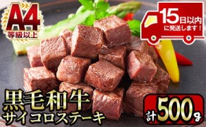 A4等級以上 鹿児島産 黒毛和牛 モモ サイコロステーキ 計500g 【財宝】