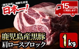 鹿児島産黒豚 肩ロースブロック 計1kg(ブロック1kg×1本)【財宝】