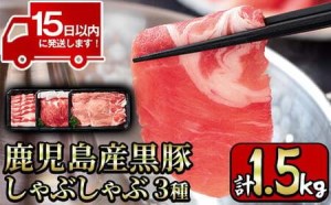 鹿児島産黒豚しゃぶしゃぶ肉3種セット計1.5kg!【財宝】