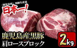 鹿児島産黒豚 肩ロースブロック 計2kg(ブロック1kg×2本)【財宝】