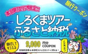 本部町で1泊以上の宿泊を伴う旅行に利用できる(左記地域以外への宿泊には利用不可)、Eメールで届くクーポンです。