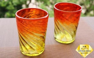 『現代の名工』宮国次男作 琉球ガラス<グラス2個セット>グラデーション