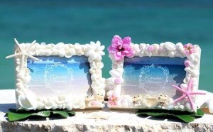 砂や貝殻を使った沖縄の海を感じるフォトフレームです。