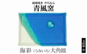 沖縄の青い海を連想させる海彩(うみいろ)大角皿です。