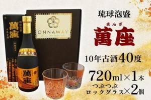 酒 泡盛 琉球泡盛「萬座」10年古酒 40度( 720ml × 1本 )&つぶつぶロックグラス 2個