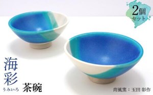 海彩(うみいろ)茶碗 2個セット【青風窯:玉田 彰作】