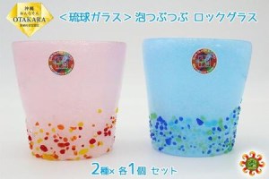 <琉球ガラス> 泡つぶつぶ ロックグラス 2種×各1個 セット