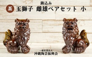 鋳込み シーサー 雌雄ペアセット【茶】小 シーサー シーサー シーサー