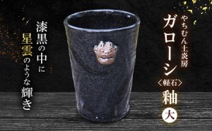 やちむん 漆黒の中に星雲のような輝き ガローシ釉 シーサー付フリーカップ(大)