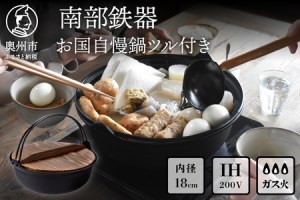 南部鉄器 お国自慢鍋 ツル付き 18cm 【OIGEN 作】 伝統工芸品 つる付[Z0043]