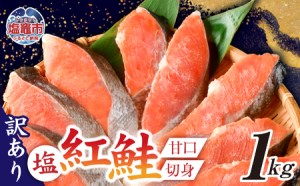訳あり 天然 紅鮭 無添加 1kg 切り身 カマ入り 甘塩