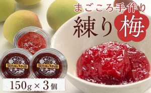 宮城県角田産【無添加】まごころ手作り練り梅(150g)×3個