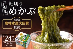 農林水産大臣賞受賞!三陸産細切りめかぶ35g×3段×8セット(かつおたれ付き) 計24パック入り|宮