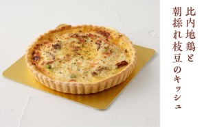 大館産比内地鶏肉と、大館産の朝採れ枝豆、大館黎明舎の卵を使用した大館を味わい尽くすキッシュです。
