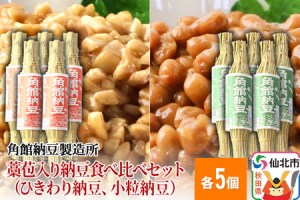 角館納豆製造所 藁苞入り納豆食べ比べセット(ひきわり納豆5個、小粒納豆5個)(冷蔵)国産大豆使用