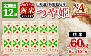 • 【定期便12回】 先行予約 令和7年産 新米 山形産 特別栽培米 つや姫 5kg×12ヶ月(計60k