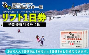 ⛷️【2025-2026シーズン】蔵王温泉スキー場 リフト1日券 特別優待引換券 4枚 FZ22-913⛷️
