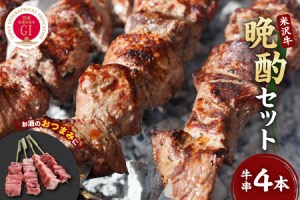 🍖🍖角切りならではのジューシーな味わいをお楽しみください🍖🍖米沢牛晩酌セット牛串4本