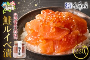 鮭専門店だからこそ出来る製造方法と、度重なる努力によって生まれた『 鮭ルイベ漬 』は、北海道産の天然の「鮭」と「いくら」のみを使用し、鮭から作った「鮭醤油」入りの特製醤油ダレに漬け込み、 上質なとろける旨みを凝縮させています。