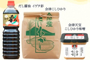 会津天宝こしひかり味噌500g+イゲタ彩しょうゆ1L+令和7年産 会津産こしひかり5kgセット|みそ