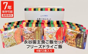 東日本大震災の経験をもとに、「味ひとすじ 永谷園」が自慢のフリーズドライ技術を駆使して開発した7年保存が可能なフリーズドライご飯のセットです。