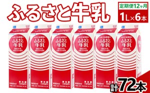 【定期便3ヶ月】ふるさと牛乳1L 6本セット 計18本