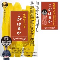 紅はるかの特徴を引き出すために、収穫後60日以上熟成させています。天日干しでゆっくり乾燥させておりますので食感は従来の干し芋より柔らかく、べにはるか独特のねっとりした甘さはそのままにスィーツ感覚で召し上がって頂けます。