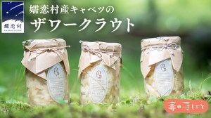 嬬恋村キャベツ農家のこだわりザワークラウト『プレーン』『和風』『スパイス』の3種類をセットでお届けします。