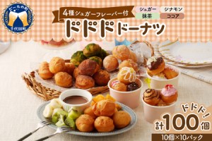 付属の4種のシュガーフレーバーをまぶして、味変しながら楽しめます。100個の山盛りドーナツが箱から出てくるインパクトを楽しみながら、幸せなおやつタイムをお過ごしください。 -