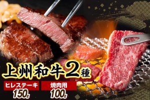 上州和牛ヒレステーキ150g&焼肉用100g 計250g(冷凍)