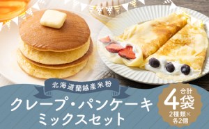 北海道 蘭越産 米粉 クレープミックス(210g×2)・パンケーキ ミックス(225g×2)セット