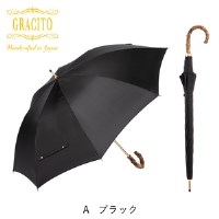GRACITO 晴雨兼用 日本製 富士絹 軽量 レディース 長傘 22200【ブラック無地】|グラシ