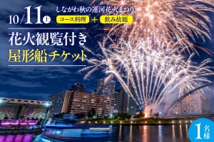 🎆🌟10月11日(土)しながわ秋の運河花火まつり 花火観覧付き屋形船 1名様チケット🌟🎆