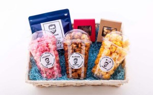 コーヒーは甘いポップコーンに合う深煎りオリジナルブレンド。他にグルテンフリーの米粉クッキーも入り、気分はパーティ!! -