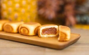 中のパイナップルジャムは生からピューレにして5時間煮込んで、パイナップルの甘酸っぱい風味を濃縮しています。 -
