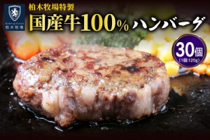 柏木牧場特製の国産牛100%ハンバーグ30個(1個120g)をお届けします!