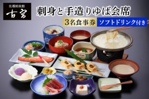 古宮旅館 刺身と手造りゆば会席 ソフトドリンク付 3名食事券【1-F】|食事券 ギフト 贈りもの 父